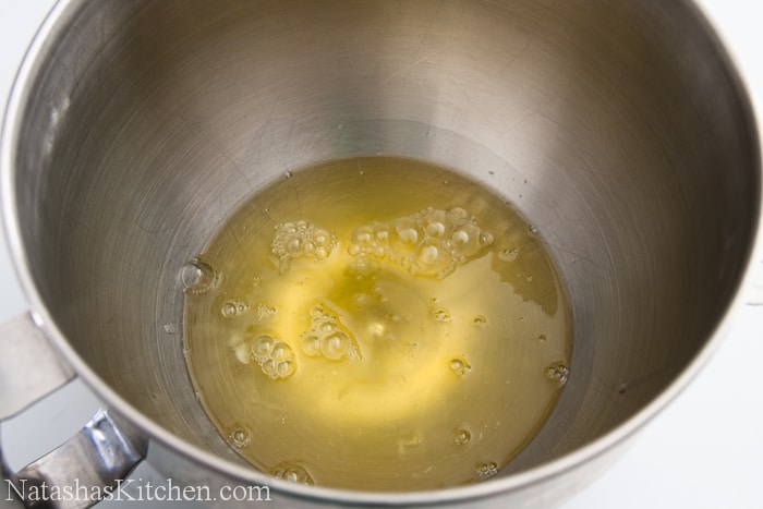 4. In a large bowl, beat egg whites on high speed until they foam and are about 3 times in volume (about 2 to 3 minutes). Don’t beat too long or you will begin to lose volume.