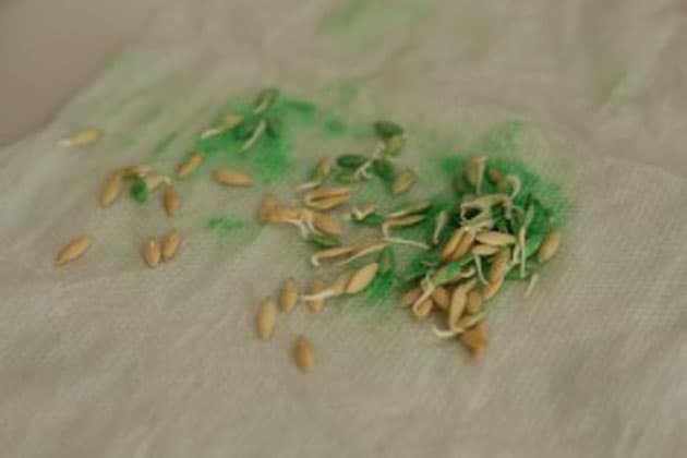Soak the folded paper towel in water and place in a glass. Cover tightly with cellophane and place on a sunny window sill.